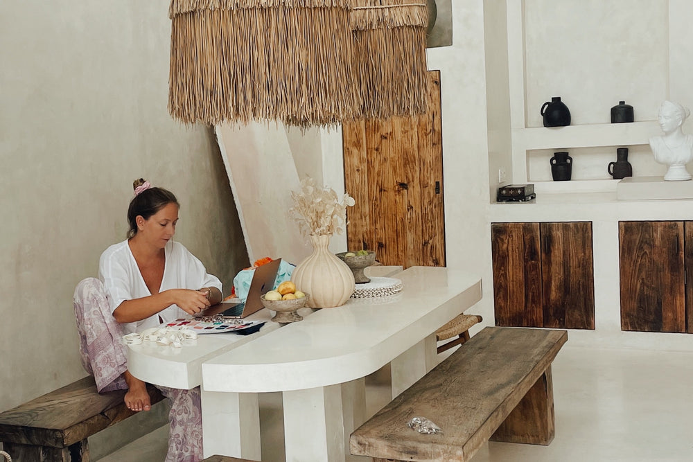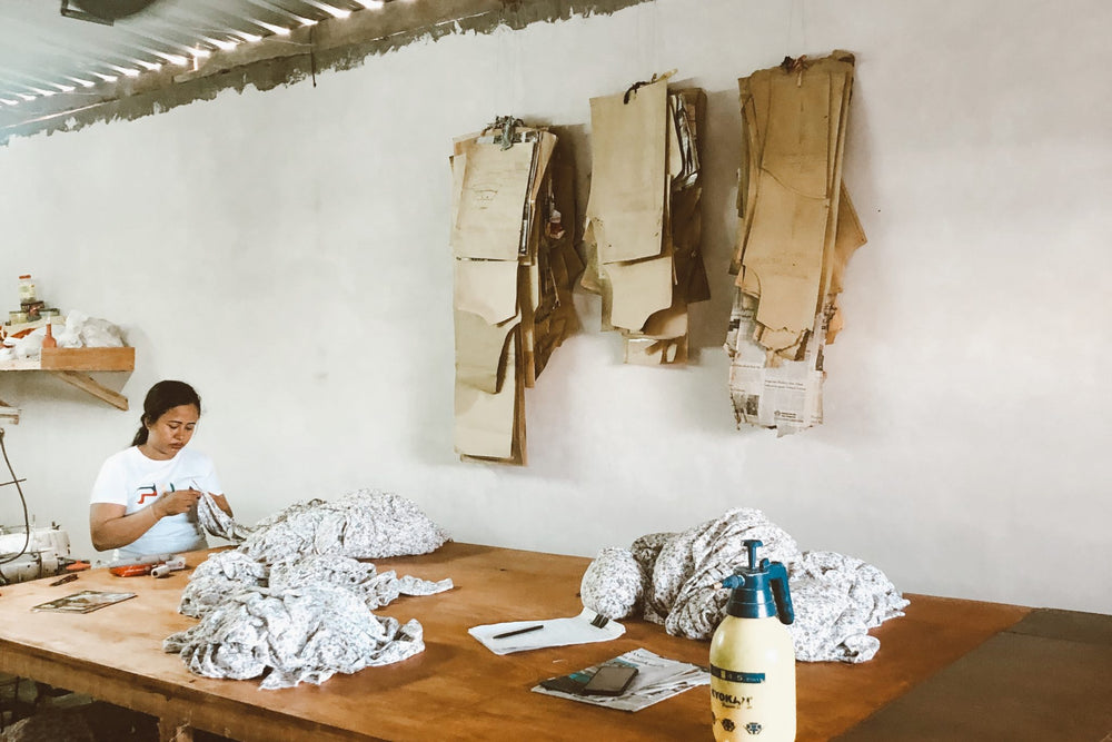 Je ne travaille qu’avec le savoir-faire exceptionnel d’artisans balinais, de la confection du tissu à la production de la pièce. Mes créations sont 100% faites à la main avec des matières de qualité : rayonne, coton, mohair…